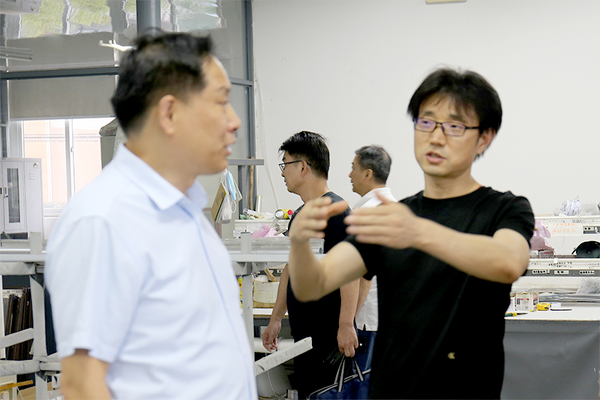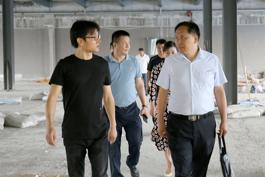 在生產車間參觀時王宏主席認真聽取毛東雙董事長關于產品的詳細介紹