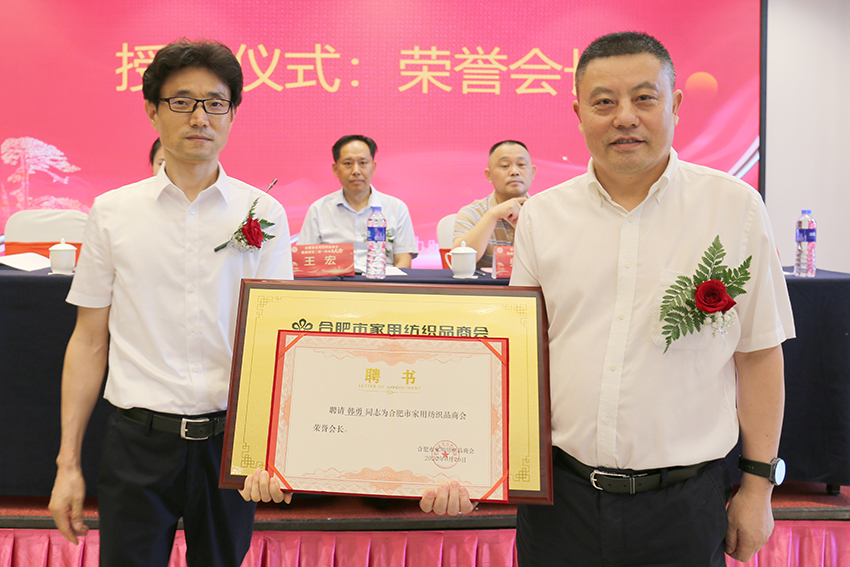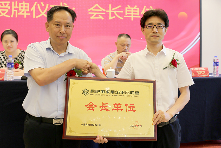 大會聽取了合肥市家用紡織品商會上一屆工作報告,并選舉產生了新一屆監事單位、副會長單位、顧問單位以及會長單位,現場進行了授牌儀式。