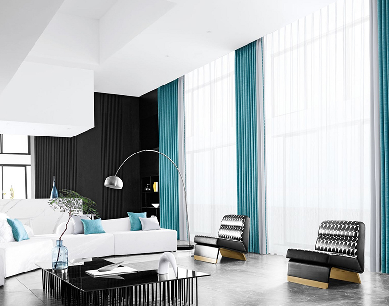 色彩點綴生活,色彩傳達需求感,關于窗簾色彩的運用,正是溫馨生活的趣味所在。如何確定窗簾的顏色,首先要確定自己的家想要營造的氛圍;提取硬裝關聯色,突破傳統張揚空間