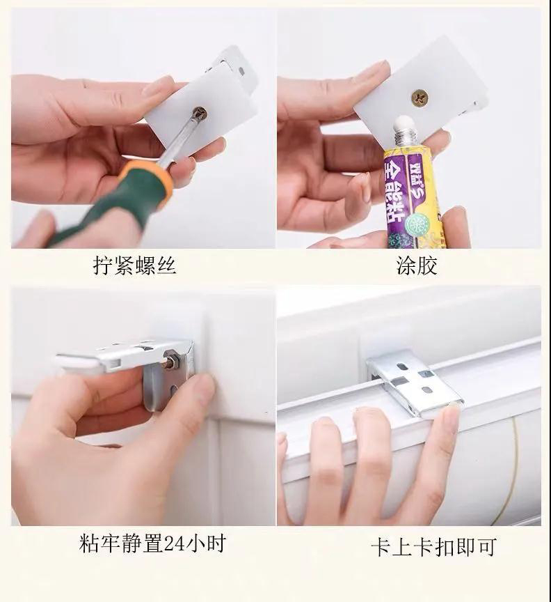 斑馬簾即可以打孔安裝,打孔安裝和羅馬簾、百葉簾一樣的安裝方法,用專用的卡扣和螺絲安裝即可 。也可以做免打安裝。由于斑馬簾相對比較輕盈,用全能膠就可以安裝好。