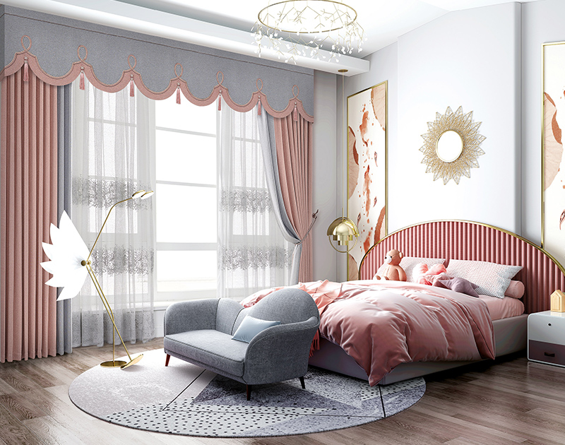 室內的光線是可以人為營造的,對于開窗率比較大的房間來說,不妨采用不同圖案的紗質窗簾,這樣當光線透進來時,光影會發生變化,使得空間層次變得豐富。這樣的空間如果不需要私密性或者遮光,那么單層的窗紗就足夠了。并且紗窗的造價很便宜,經濟又實惠。