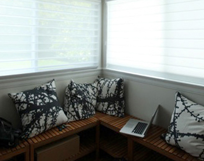 里拉簾的面料分為透光和遮光兩種,材料為100%聚酯纖維布,表、背面雙層薄紗結構,中間層聚酯纖維簾布,可開啟或