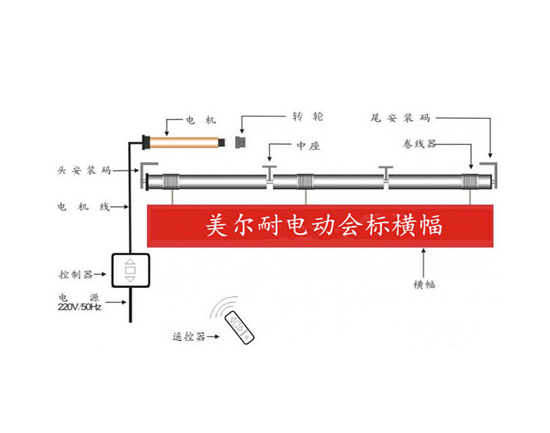橫幅能夠完全同步水平升降,左右升降零誤差,到位自動停止,三級行程限位保護,再也不怕因電動會標升的過高,導致行程失控,使電機到位還不能切斷電源,燒壞電機和破壞吊頂了。