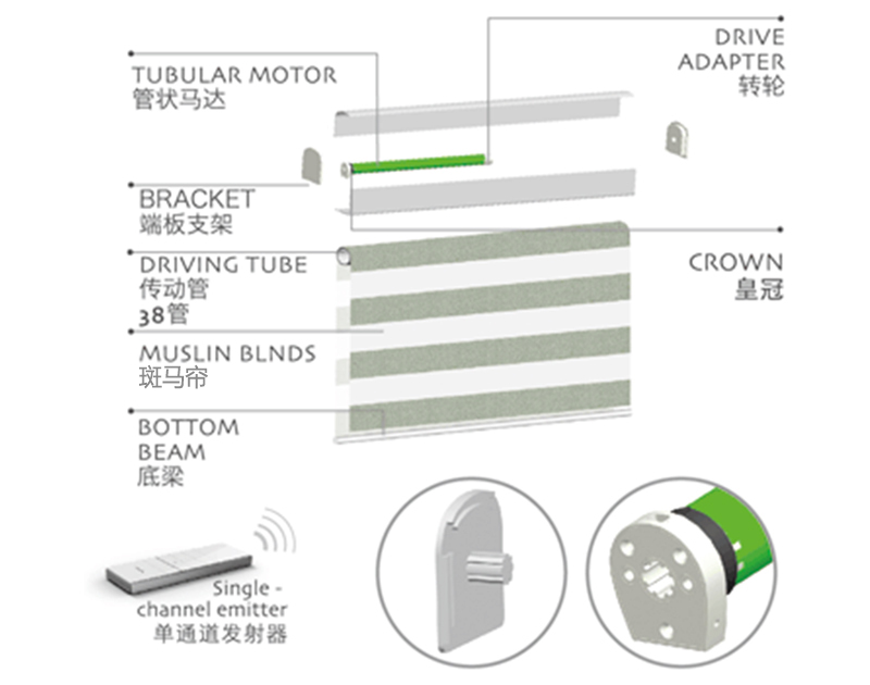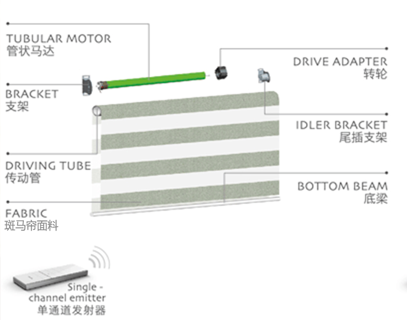 電動斑馬簾,是電動卷簾的一個拓展產品,多應用于酒店,高檔住宅的臥室,辦公室的落地窗等場合。電動斑馬簾